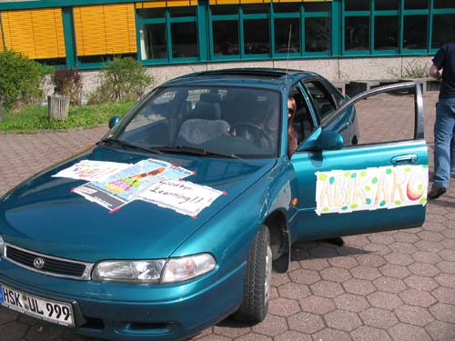 Am meisten Aufwand hatte Matthias Wiedeking betrieben. Er hatte zusätzliche Hupen auf dem Dach des Wiedekingschen VW montiert, die ihm dann mitten im Stadtverkehr die Sicherungen durchschmelzen ließen. Das Fahrzeug ließ sich Gott sei Dank relativ problemlos wieder in Betrieb setzen. Das schönste Auto hatte meiner Meinung nach Stefanie Lenze. Man sollte einen Schönheitspreis an ihre "Abikarosse" verleihen…